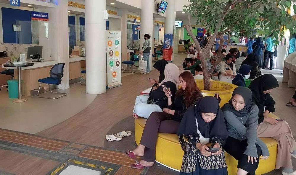 Masyarakat ramai menunggu pelayanan Disdukcapil Pekanbaru di Mal Pelayanan Publik, Jalan Jenderal Sudirman, Kamis (9/4/2026). Server Disdukcapil mengalami masalah sejak 31 Maret lalu hingga berdampak pada layanan kepada masyarakat. EVAN GUNANZAR/RIAU POS