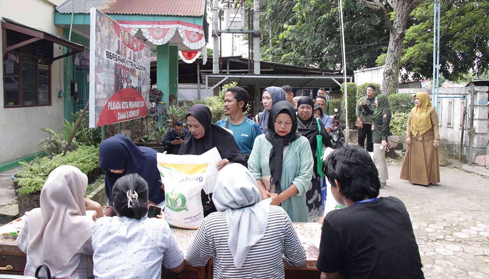 Sejumlah warga antre untuk mendapatkan beras bantuan pangan di Kantor Lurah Limbungan, Rumbai Pesisir, Kota Pekanbaru, Selasa (10/12/2024). DKP pekanbaru untuk Riau Pos