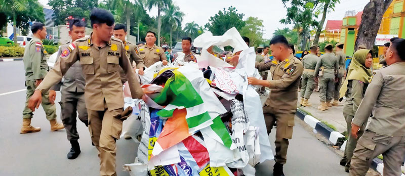 ”Penertiban APK hari ini ada dua titik lokasinya, disekitaran Jalan Jenderal Sudirman dan di Jalan Arifin Achmad,” ujar Kasatpol PP Pekanbaru Zulfahmi Adrian.