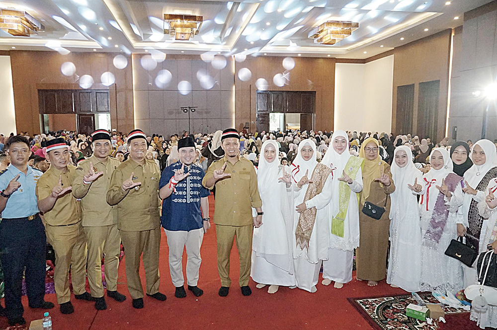 Wako Pekanbaru Agung Nugroho berfoto bersama Ustaz Hilman Fauzi didampingi Wawako Pekanbaru Markarius Anwar, Pj Sekdako Pekanbaru Zulhelmi Arifin serta Ketua TP PKK Pekanbaru Sulastri Agung.