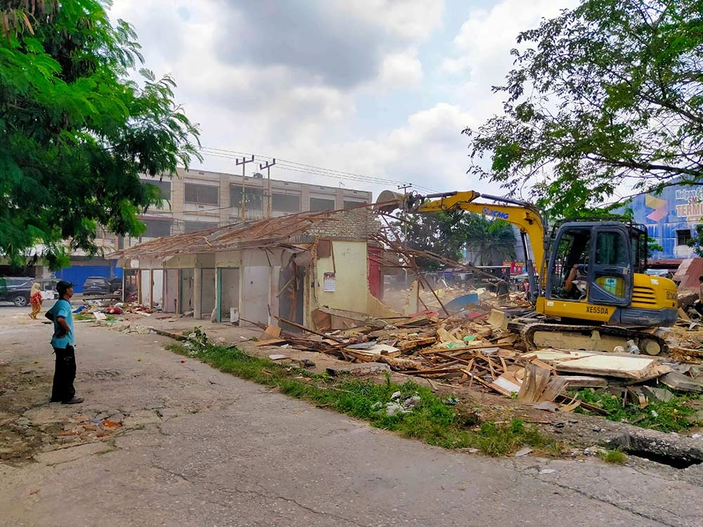 Berdasarkan pantauan di lapangan, proses pembongkaran melibatkan puluhan personel gabungan dari Satpol PP dan Dinas Perindustrian dan Perdagangan (Disperindag) Pekanbaru. Petugas membantu pedagang mengeluarkan barang dagangan dari dalam kios sebelum satu unit alat berat diterjunkan untuk merobohkan bangunan.