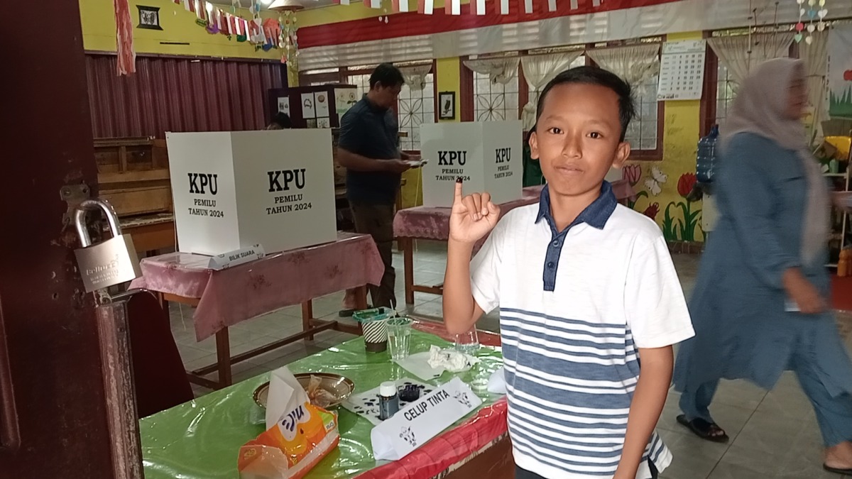 Siswa kelas X di SMAN 14 Pekanbaru ini tiba di TPS sejak pukul 10.00 WIB. Ditemani dengan kedua orang tuanya serta sejumlah teman dan saudaranya ia mengantre untuk bisa melakukan pencoblosan di dalam kelas di TPS 02 yang sudah disulap menjadi taman bermain yang penuh dengan balon, serta hiasan yang dibuat dari barang bekas.