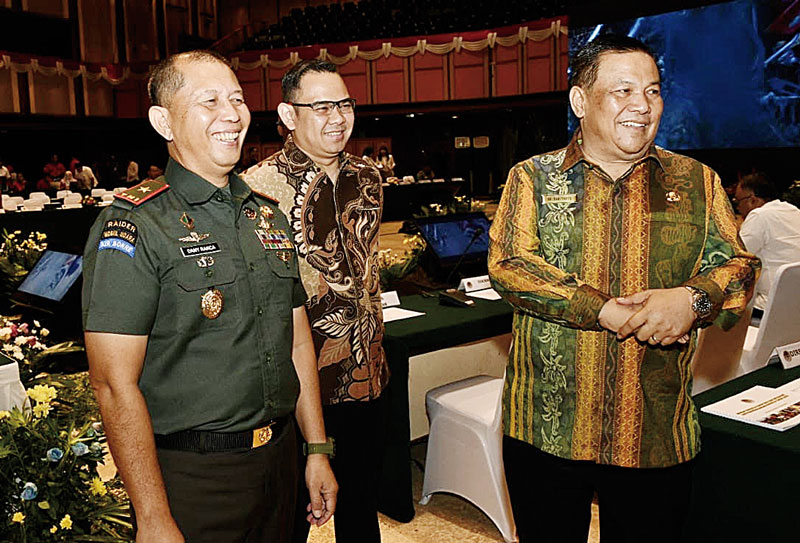Pj Gubernur Riau SF Hariyanto (kanan) bersama Danrem 031 Wirabima Dany Rakca Andalasawan (kiri) saat menghadiri Rakorsus di Kementerian Lingkungan Hidup dan Kehutanan, Kamis (14/3/2024). (Diskominfotik Riau untuk Riau Pos)