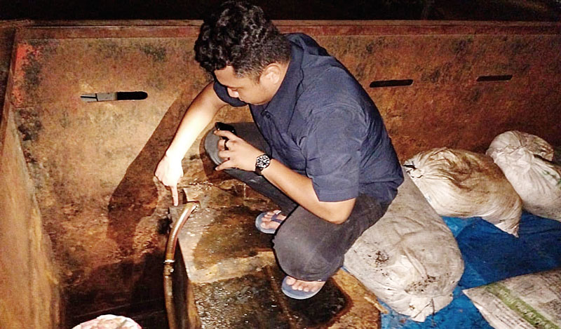 Petugas dari Ditreskrimsus Polda Riau saat memeriksa kendaraan roda 6 yang telah dimodifikasi untuk memuat 3 ribu liter BBM biosolar, baru-baru ini. (Ditreskrimsus Polda Riau untuk riaupos.co)