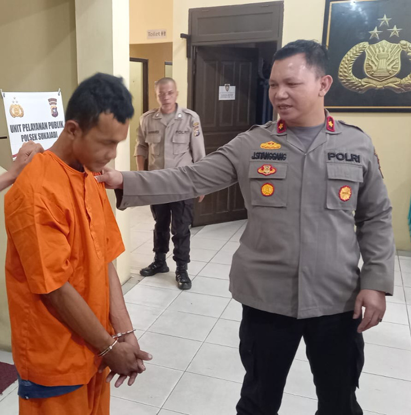Saat ini pelaku sudah ditetapkan sebagai tersangka dan ditahan di Mapolsek Sukajad. Dirinya dijerat dengan Pasal 363 tentang pencurian dengan ancaman 7 tahun penjara.(end)