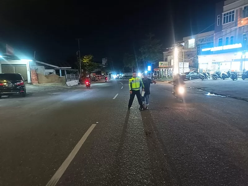 Polisi saat melakukan olah TKP di lokasi kecelakaan di Jalan Hangtuah, tepatnya di depan Warkop Agam D'Juwara, Kecamatan Tenayan Raya, Kota Pekanbaru, Sabtu (13/12/2025). (Satlantas Polresta Pekanbaru)