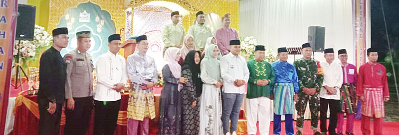Camat Bukit Raya Tengku Ardi Dwisasti SSTP foto bersama panitia dan tokoh masyarakat Tangkerang Labuai usai pembukaan MTQ, Ahad (14/1/2024). (Herianto Baserah/RiauPos.co)