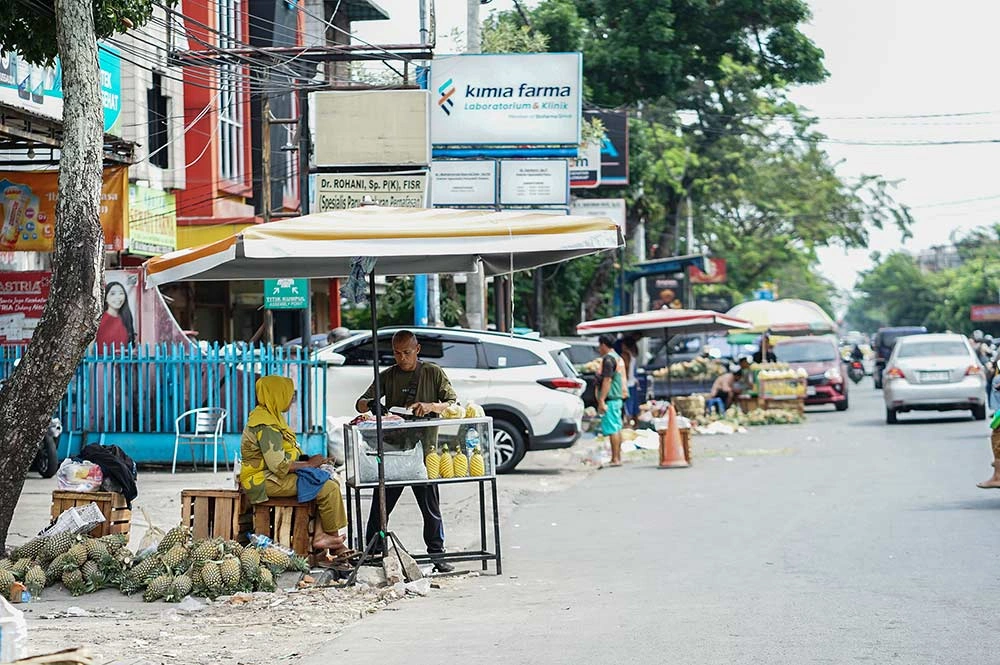 Pedagang kaki lima berjualan di kawasan Jalan Ahmad Yani, Pekanbaru, Rabu (15/4/2026).MHD AKHWAN/RIAU POS