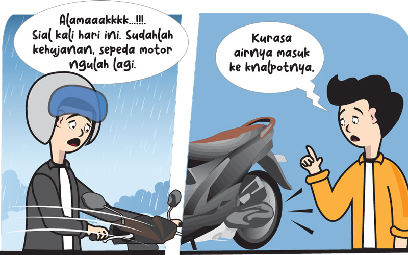”Kurasa airnya masuk ke knalpotnya,” tambah temannya lainnya.