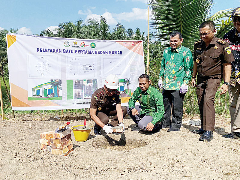 Kepala Kejaksaan Tinggi (Kajati) Riau Akmal Abbas menandai dimulainya bedah rumah ini dengan melakukan peletakan batu pertama pembangunan rumah warga kurang mampu di Kecamatan Tenayan Raya, Kamis (18/7).