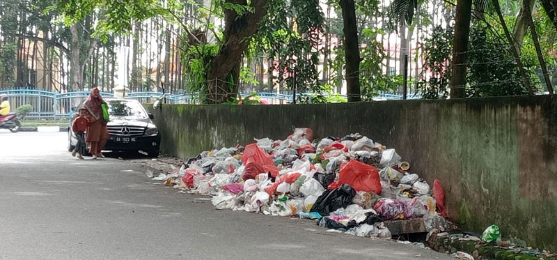 Pantauan Riau Pos, tumpukan sampah sisa rumah tangga yang dibungkus ke dalam kantor plastik dibuang sembarangan di badan jalan, sehingga menumpuk dan menimbulkan bau tidak sedap terhadap lingkungan sekitar.
