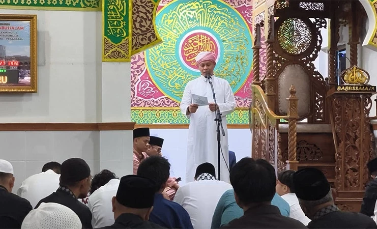 Ia menjelaskan bahwa awalnya salat direncanakan di Lapangan Hang Jebat, namun hujan membuat pelaksanaan dipindahkan ke Masjid Babussalam.