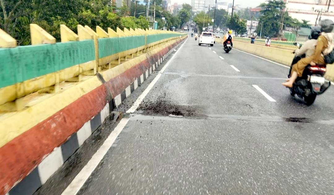 PEKANBARU (RIAUPOS.CO) – Kerusakan jalan berupa lubang di flyover Jalan Jenderal Sudirman, tepatnya di simpang Jalan Tuanku Tambusai, mulai dikeluhkan pengendara karena dinilai membahayakan keselamatan.