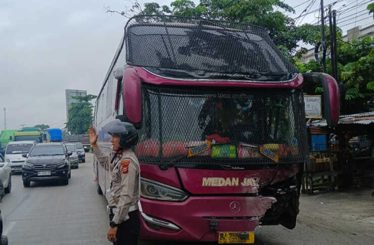 Peristiwa bermula saat mobil double cabin melaju dari arah selatan menuju utara. Sesampainya di depan PT Peni Karya, kendaraan tersebut berbelok ke kanan. Di waktu bersamaan, bus Medan Jaya datang dari arah berlawanan hingga tabrakan pun tak terhindarkan.