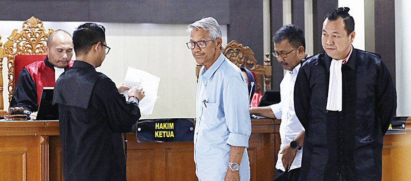 ‘’Ini Bapak tak jelas maksudnya apa tak jelas?’’ desak hakim. Sejenak Sukarmis terlihat berpikir namun belum menjawab.