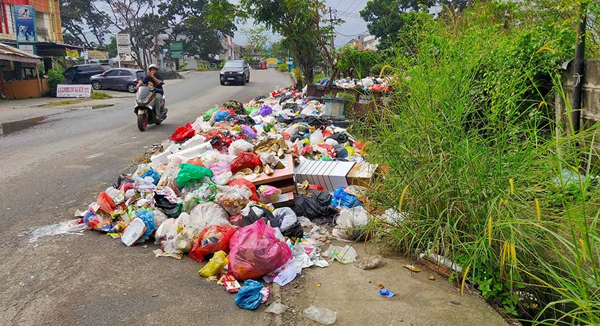 Kondisi sampah yang berserakan di Jalan Paus, Kecamatan Marpoyan Damai Pekanbaru, Sabtu (22/2/2025). EVAN GUNANZAR/RIAU POS
