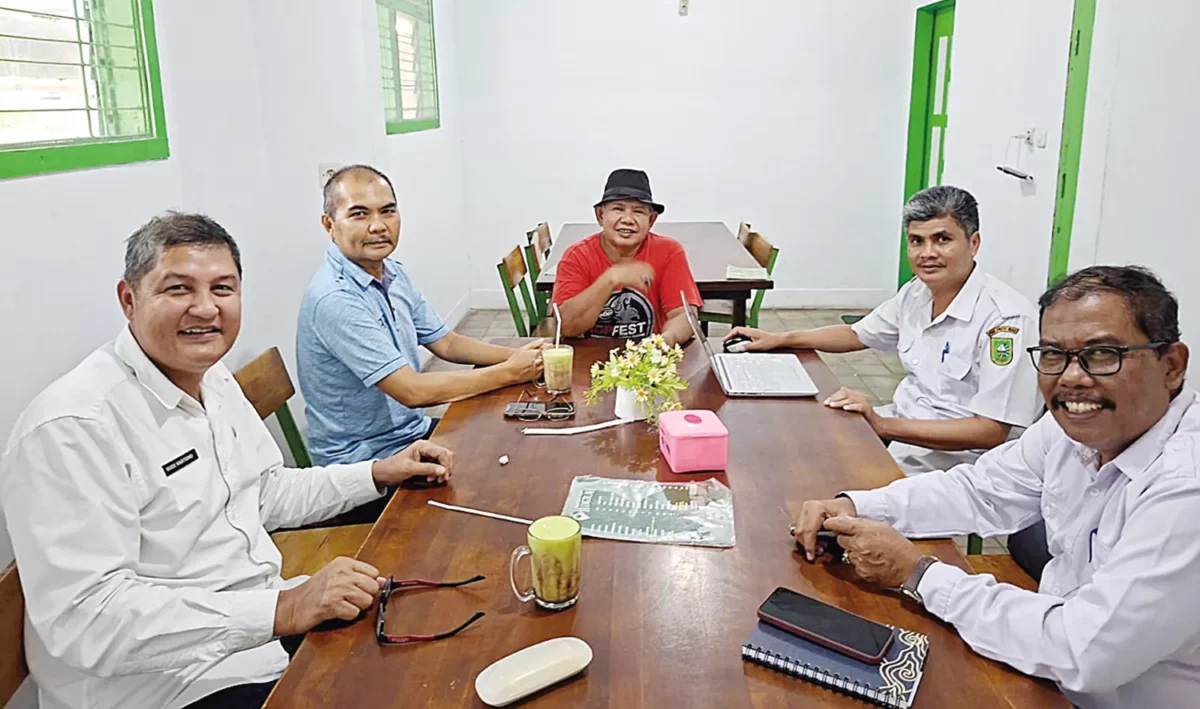 Ketua IKBB Pekanbaru Aswandi SP MSi (kiri) pada rapat penyempurnaan kepengurusan sekaligus program balik basomo pacu jalur Baserah dengan tim formatur di Warung Kopi Hang Tuah, Kota Pekanbaru, Rabu (16/7/2025).