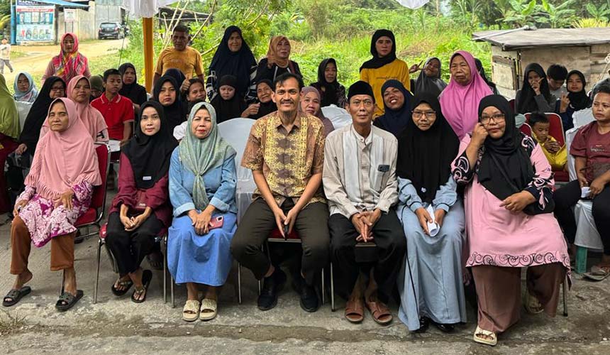 Anggota DPRD Kota Pekanbaru foto bersama warga usai sosialisasi penyebarluasan Perda KTR di Dapil IV Kecamatan Bukit Raya dan Sail, Kamis (20/3/2025). Herianto Baserah/Riau Pos.