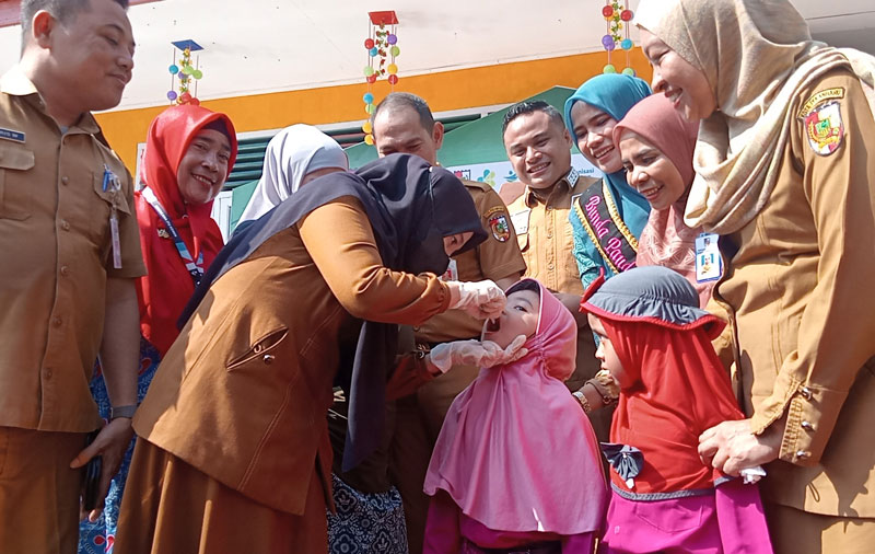 Anak didik di TK Negeri 4 Pekanbaru mendapatkan tetesan imunisasi Polio yang digelar serentak di Kota Pekanbaru, Selasa (23/7/2024). (Prapti Dwi Lestari untuk riau pos)