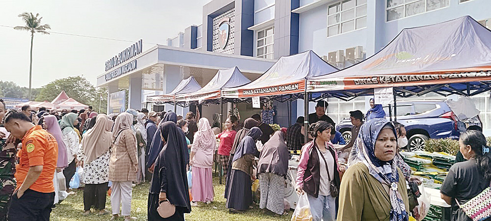Masyarakat Kota Pekanbaru mendatangi stan GPM di halaman Rumah Sakit Angkatan Udara dr Sukirman Lanud Roesmin Nurjadin Pekanbaru, Jalan Adi Sucipto, Kecamatan Marpoyan Damai, Kamis (24/7/2025). (Prapti Dwi Lestari/riau pos )