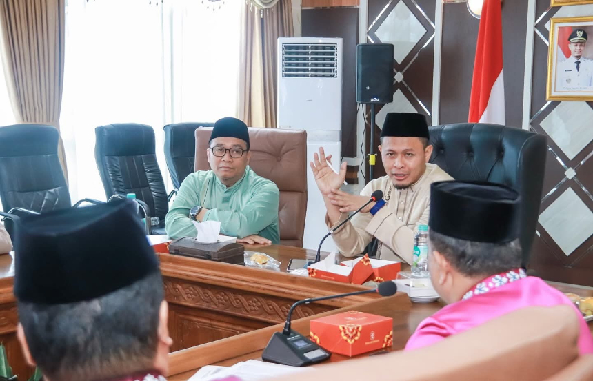 Wali Kota Pekanbaru Agung Nugroho didampingi Wakil Wali Kota Pekanbaru Markarius Anwar saat membahas pelaksanaan Program Pekanbaru Zero Anak Putus Sekolah bersama jajaran Pemko Pekanbaru,