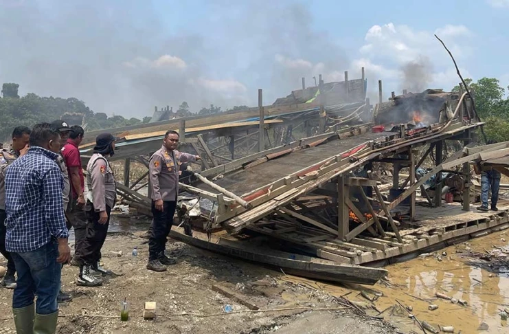 Penertiban PETI, Polisi Musnahkan 9 Rakit di Inhu dan Kuansing