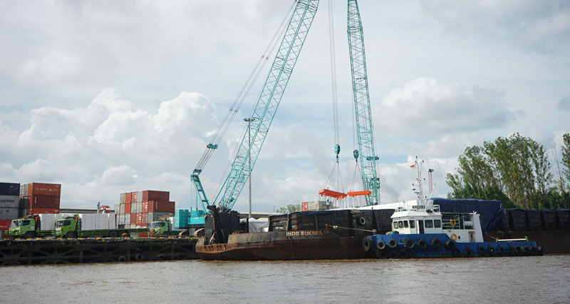Suasana bongkar muat di salah satu pelabuhan di kawasan Kabupaten Siak, Riau beberapa waktu lalu. (EVAN GUNANZAR/RIAU POS)