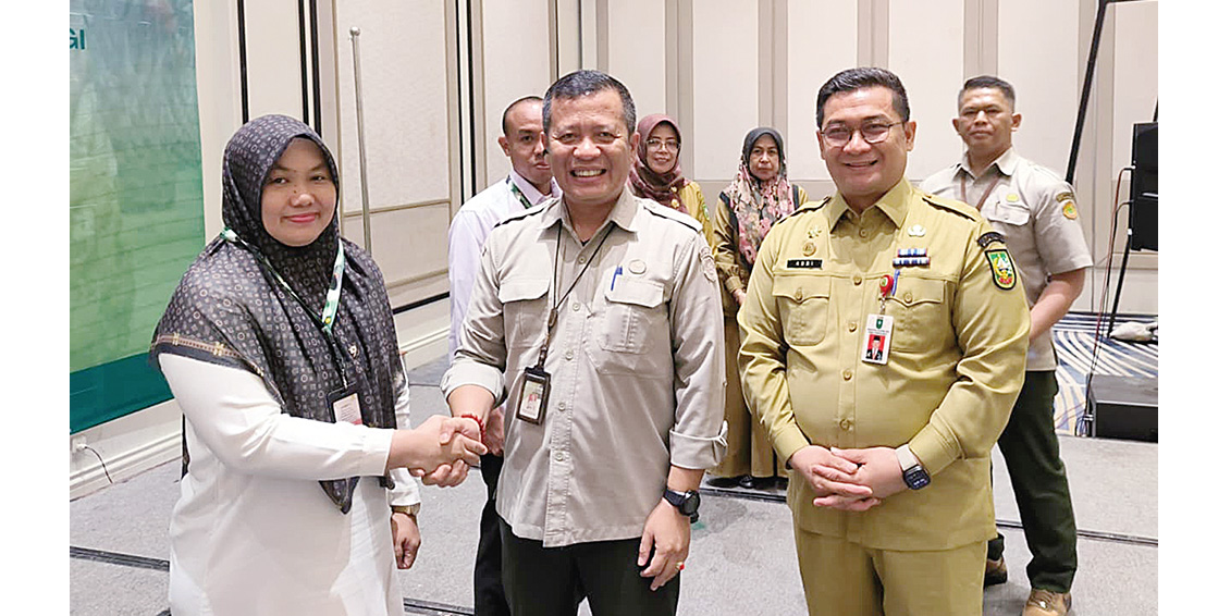 Kepala Dinas Perkebunan Riau Syahrial Abdi (kanan) saat menghadiri pelatihan penguatan kelembagaan petani sawit di Pekanbaru, Senin (25/8/2025).