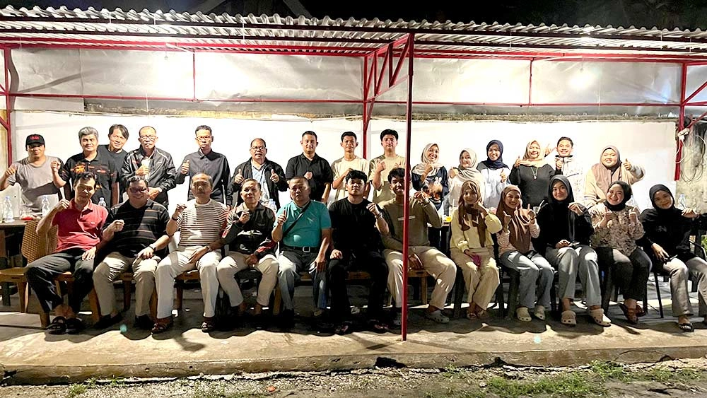 Para pengurus IKBB, pembina dan panitia foto bersama usai pembubaran panitia halalbihalal IKBB Pekanbaru di Kedai Kopi Opera Marpoyan, Sabtu (25/4/2026). IKBB untuk Riau Pos
