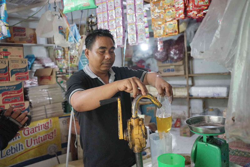 ”Kalau sekarang warga khususnya pedagang makanan banyak beralih ke minyak curah karena jumlahnya lebih banyak, harga juga lebih murah. Karena perbandingan beratnya juga lebih banyak di minyak curah,” katanya.