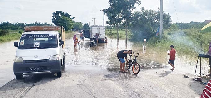 PELALAWAN (RIAUPOS.CO) – Tingginya intensitas curah hujan yang turun mengguyur ibu kota Kabupaten Pelalawan sejak sepekan terakhir, telah berdampak menyebabkan debit air Sungai Pangkalan Kerinci menjadi meluap. Kondisi tersebut tentunya telah menyebabkan hampir seluruh ruas badan jalan di Kecamatan Pangkalan Kerinci digenangi air.