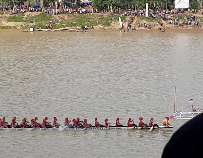 Andil jalur Siposan Rimbo Pemprov Riau Kapten Jarot dari Desa Pauh Angit Pangean Kuansing di ajang pacu sampan terbesar di Inhu itu membuat masyarakat antusias menyaksikan pacu jalur yang disebut masyarakat Inhu pacu sampan itu.