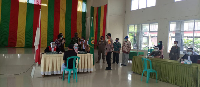 Untuk memastikan sidang pelanggaran ringan ini berjalan baik, Penjabat Bupati Inhu Chaerul Rizki beserta unsur Forkopimda lainnya melakukan peninjauan. Terlihat hadir Kapolres Inhu AKBP Efrizal, Kepala Kejari Rengat Furkonsyah, Dandim Inhu Letkol Eko Supri dan Ketua Pengadilan Negeri Rengat Melinda Aritonang SH.