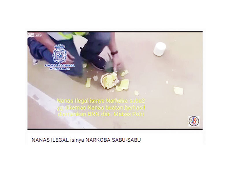 Video dengan keterangan yang valid pernah diunggah kanal berita VOA News pada 27 Agustus 2018. Ternyata, yang diamankan oleh polisi Spanyol tersebut bukan sabu-sabu, melainkan kokain. Judul video dengan durasi 1 menit 39 detik itu Spanish police seize cocaine-stuffed pineapples.