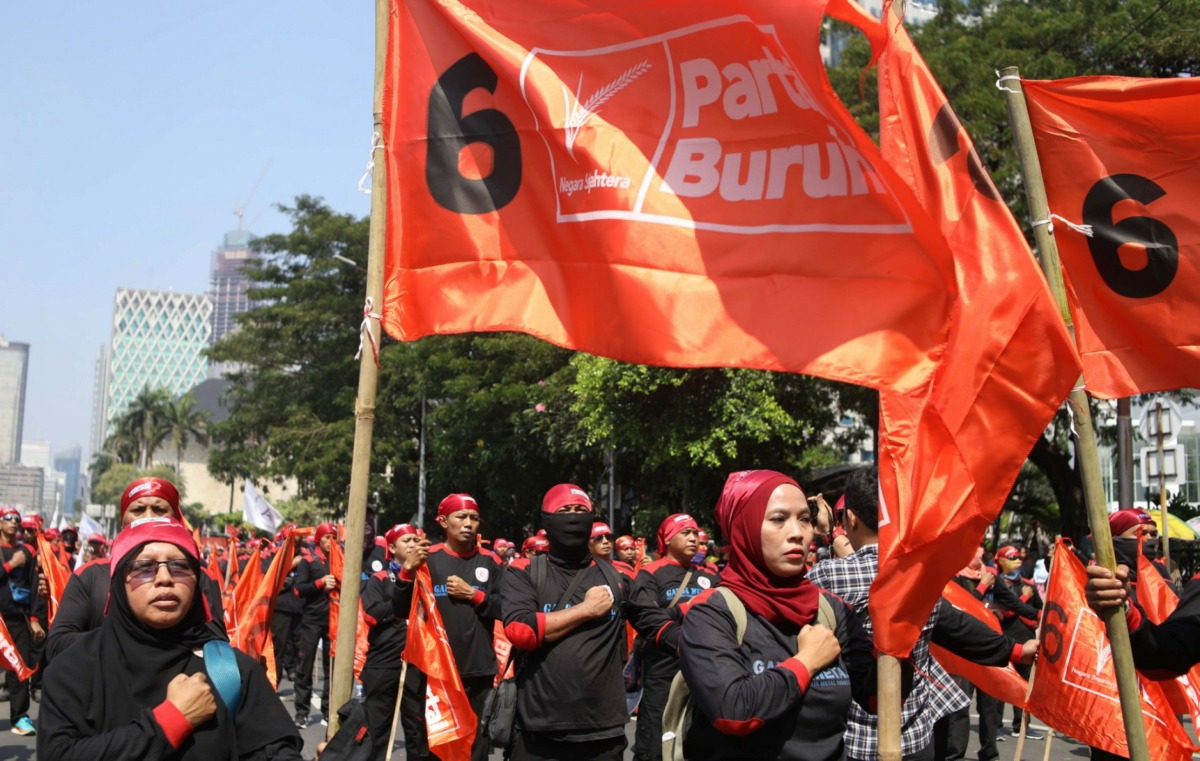 Ratusan massa buruh memadati area patung kuda sejak pukul 10.00 WIB pagi. Mereka datang dari berbagai wilayah di kawasan Jabodetabek. Presiden Konfederasi Serikat Pekerja Indonesia (KSPI) Said