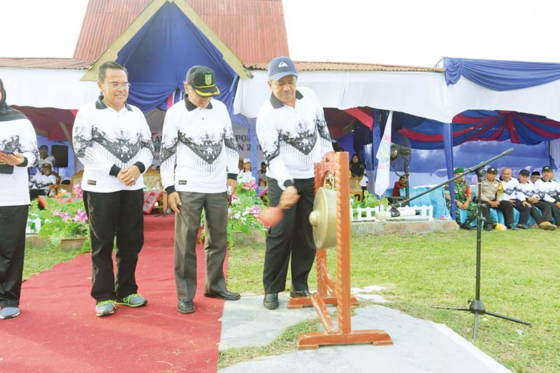 BUKA PORSENI: Bupati Siak Alfedri membuka Pekan Olahraga dan Seni (Porseni) tingkat Kabupaten Siak di Kecamatan Koto Gasib, Kamis (5/12/2019). (wiwik widaningsih/riau pos)