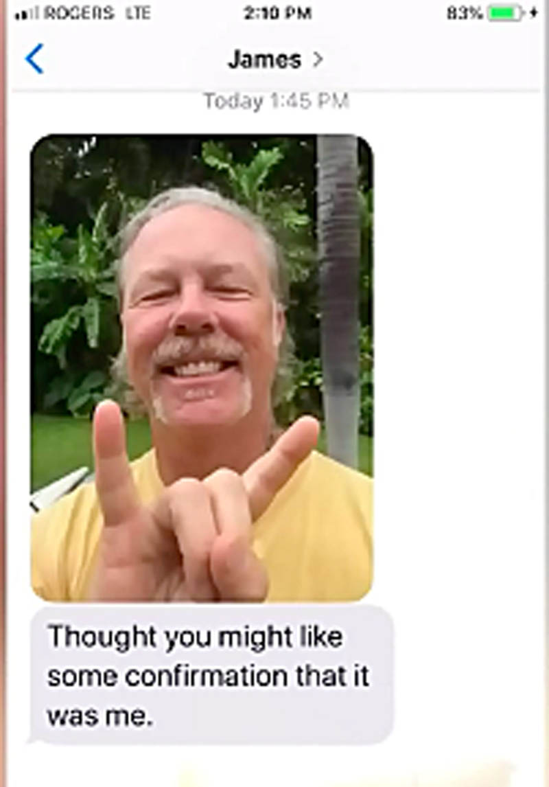 James Hetfield mengirim foto selfienya kepada Dee Galant. (CTV NEWS)