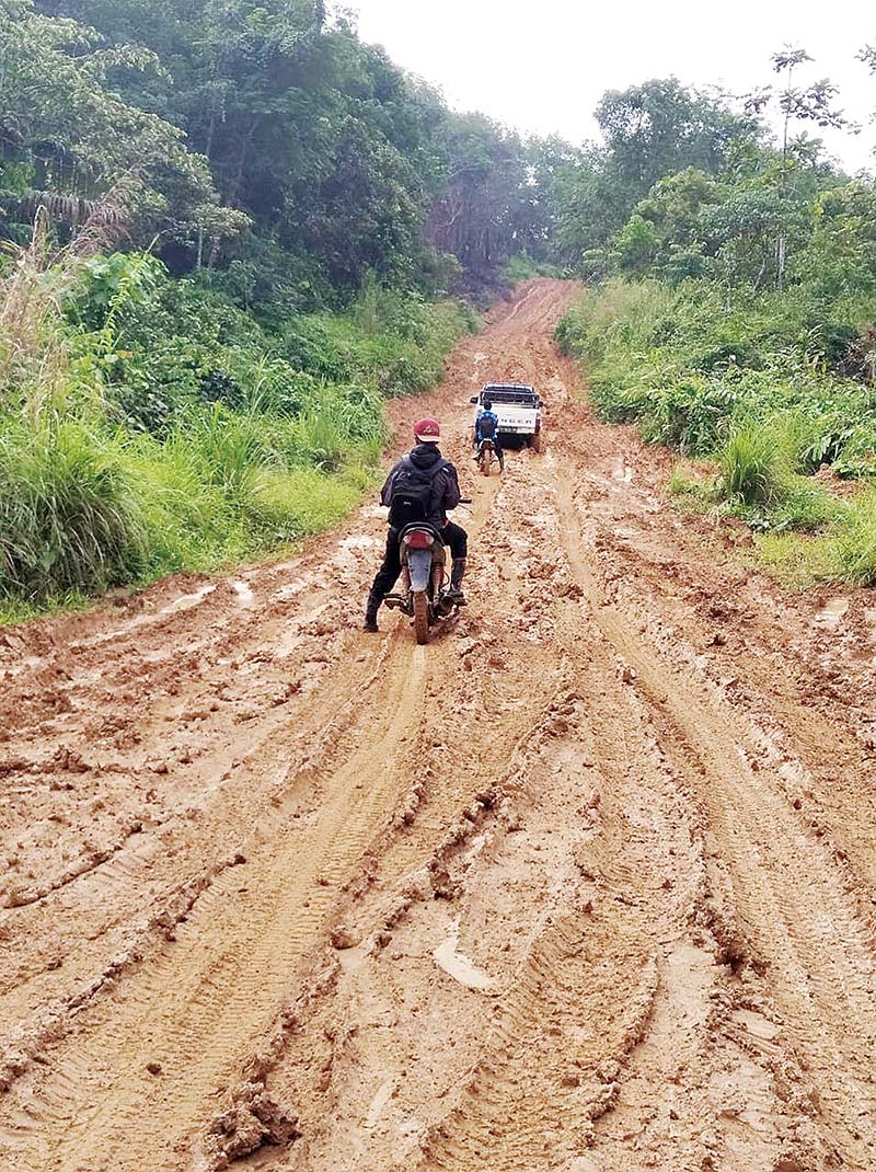 Kondisi jalan hancur terutama menuju dua desa tersebut, dipicu oleh tingginya curah hujan dalam beberapa pekan ini. Kemudian, di jalan yang masih batu tanah itu rusak akibat mobil berat yang melintas didaerah itu.