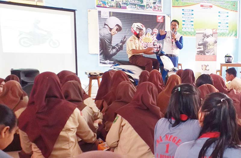 PELALAWAN (RIAUPOS.CO) — Awali bulan kasih sayang, PT Capella Dinamik Nusantara Main Dealer Honda Wilayah Riau bekerja sama dengan SMAN 1 Bandar Petalangan, Pelalawan, menggelar kegiatan edukasi safety riding, Sabtu (8/2).