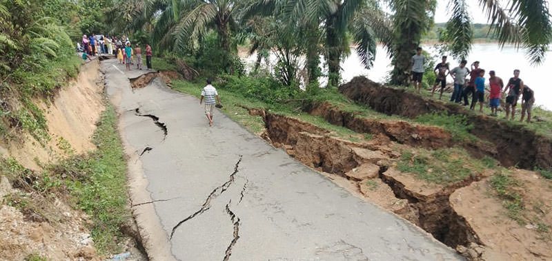 Bahkan di Desa Pulau Aro Kecamatan Kuantan Tengah, terjadi longsor diserta ruas jalan ambruk. Tepatnya di daerah botuang berdekatan dengan tutap tebing Desa Pulau Aro.