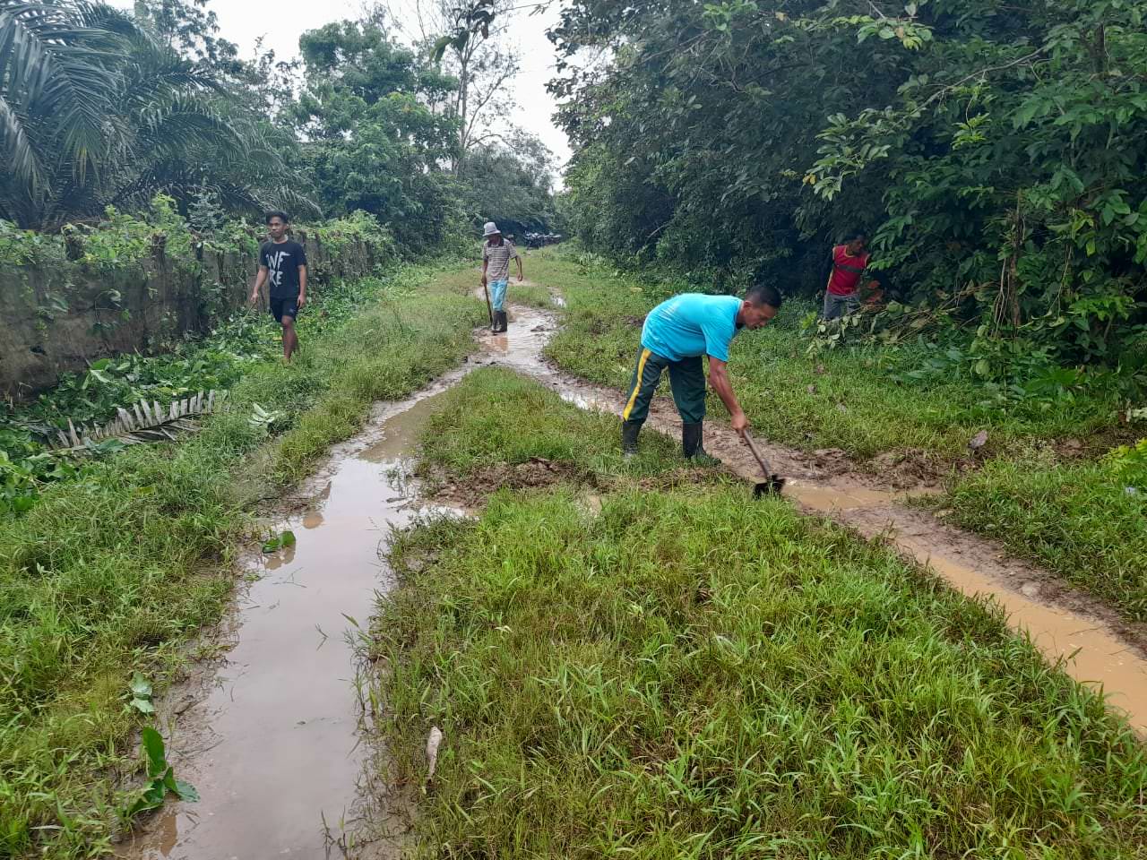 Dipimpin Penjabat (Pj) Kepala Desa Nurdiana SSos bersama Ketua BPD Pulau Kumpai Hapiz, masyarakat dikerahkan dalam goro jalan sepanjang 2 kilometer tersebut.