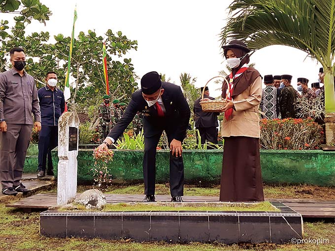 SELATPANJANG (RIAUPOS.CO) – Pemerintah daerah, Polres, serta unsur Muspida Kabupaten Kepulauan Meranti berziarah di Makam Pahlawan Kusuma Bangsa, Jalan Perjuangan Alah Air, Kecamatan Tebing Tinggi, Rabu (10/11). Ziarah tersebut menjadi aktivitas rutin mereka dalam menyambut Hari Pahlawan tiap 10 November. Tahun ini, kegiatan dipimpin Bupati Kabupaten Kepulauan Meranti H M Adil.