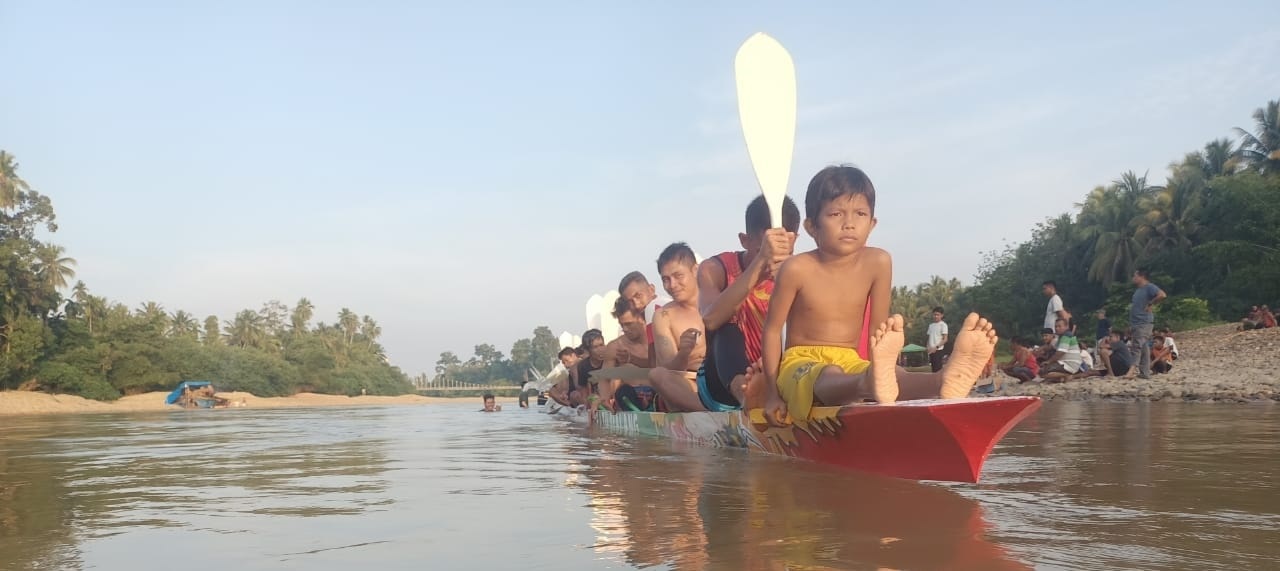 LUBUKJAMBI (RIAUPOS.CO)- Kecamatan Kuantan Mudik memulai pacu jalur ajang latihan bersama, di Topian Tampuniak Desa Kinali dan Pulau Binjai, Selasa (12/7/2022) siang. Ajang latihan bersama yang ditaja oleh Forum Kepala Desa Kecamatan Kuantan Mudik itu memperebutkan piala bergilir anggota DPRD Kuansing, Fedrios Gusni.