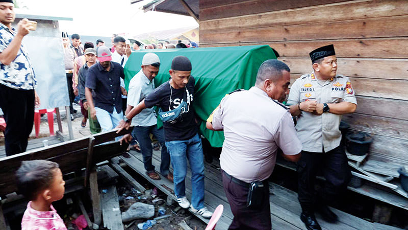Posisi jenazah berada di RSUD Jalan Dorak, Kepulauan Meranti sejak dievakuasi Kamis (12/3/20) dini hari dari TKP. Proses operasi pembersihan proyektil peluru dilakukan oleh jajaran Polda Riau dari Pekanbaru baru bisa dilakukan sore. Waktu mereka terbuang di perjalanan, karena jarak tempuh yang jauh.