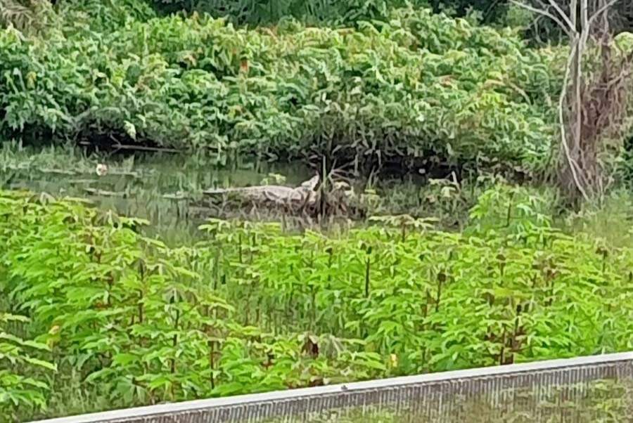 Seekor buaya sedang berjemur di daerah Kelurahan Tanjung Penyembal, Kecamatan Sungai Sembilan, Dumai. (BPBD Dumai untuk Riau Pos)