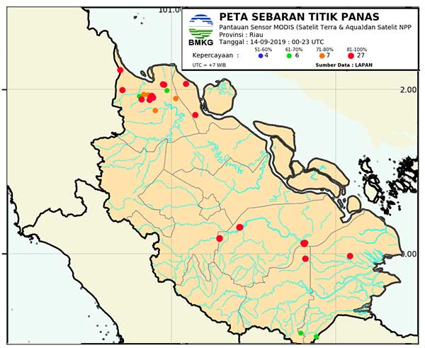 "Yang sebarannya ada di Pelalawan 13 titik, Rohil 17 titik, Kampar lima titik, Inhu empat titik, Inhil tiga titik dan Dumai dua titik," ungkap Kasi Data dan Informasi Marjuki.