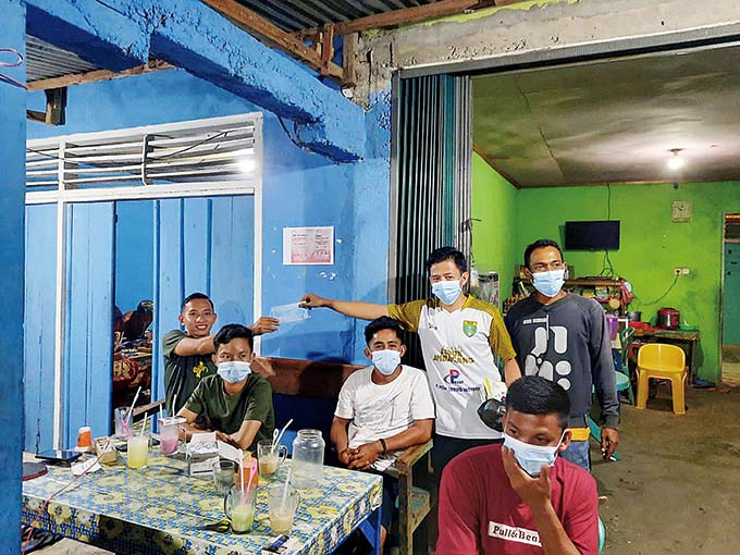 Sabtu (14/8) malam, Kepala Desa Lubuk Ambacang, Iid Siwandi bersama perangkat menyisir seluruh kedai kopi yang ada di Desa Lubuk Ambacang sekaligus memberikan edukasi sambil membagikan masker.