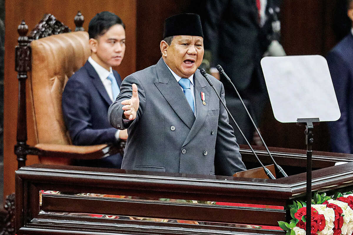 Presiden RI Prabowo Subianto (kanan) didampingi Wakil Presiden RI Gibran Rakabuming Raka (kiri) menyampaikan pidato kenegaraan pada Sidang Tahunan MPR dan Sidang Bersama DPR-DPD Tahun 2025 di Gedung Nusantara, Kompleks Parlemen, Senayan, Jakarta, Jumat (15/8/2025).(SALMAN/JAWA POS)