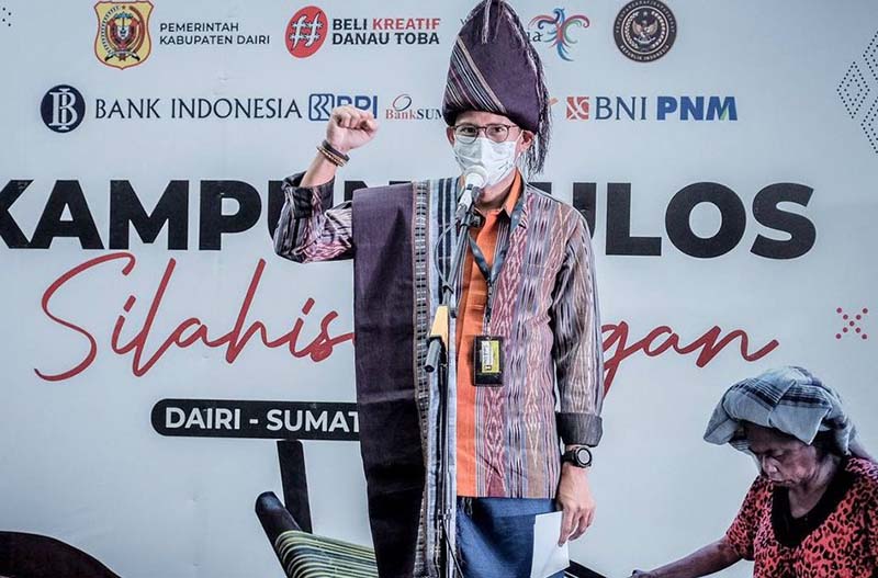 MEDAN (RIAUPOS.CO) – Menteri Pariwisata dan Ekonomi Kreatif Sandiaga Uno mendorong para pengrajin ulos di Provinsi Sumatera Utara (Sumut) terus berinovasi untuk meningkatkan produksi.
