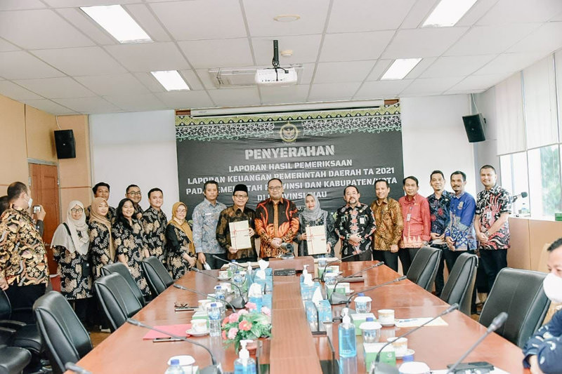 Penyerahan penghargaan tersebut diberi langsung Kepala Badan Pemeriksaan Keuangan (BPK) RI Perwakilan Provinsi Riau, Widhi Widayat didampingi Kepala Sub Auditoriat Riau II BPK RI Perwakilan Provinsi Riau, Handrias Hariyotomo di Ruang Rapat lantai II BPK-RI Perwakilan Provinsi Riau, Jumat (20/5/2022).